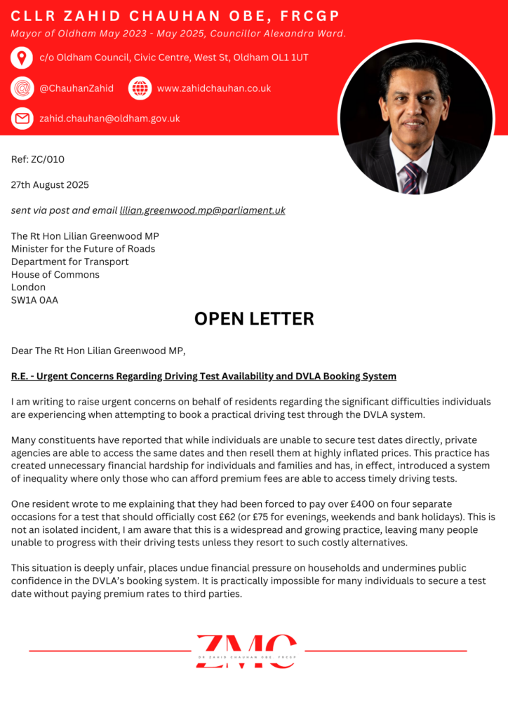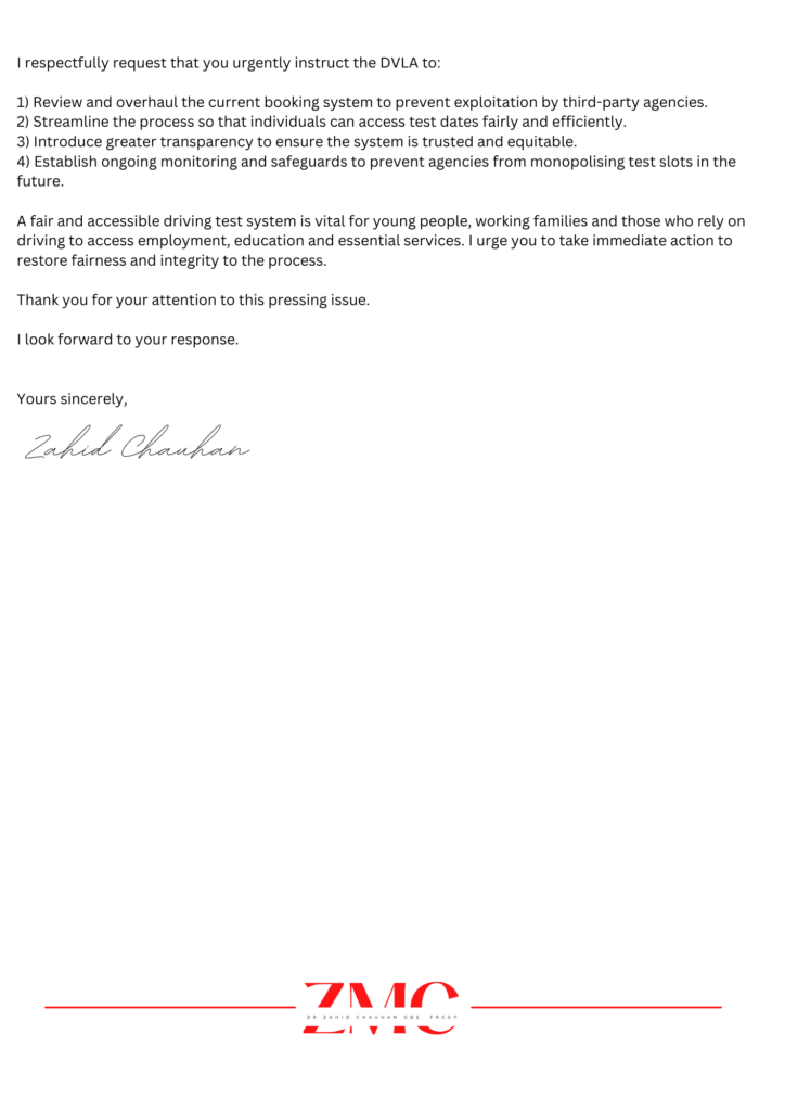 I have heard countless stories of frustration, while learners are unable to secure dates directly, private agencies are somehow able to access the same slots and resell them at hugely inflated prices. It is a growing, unfair practice that puts unnecessary financial pressure on families and creates inequality in access to driving tests.